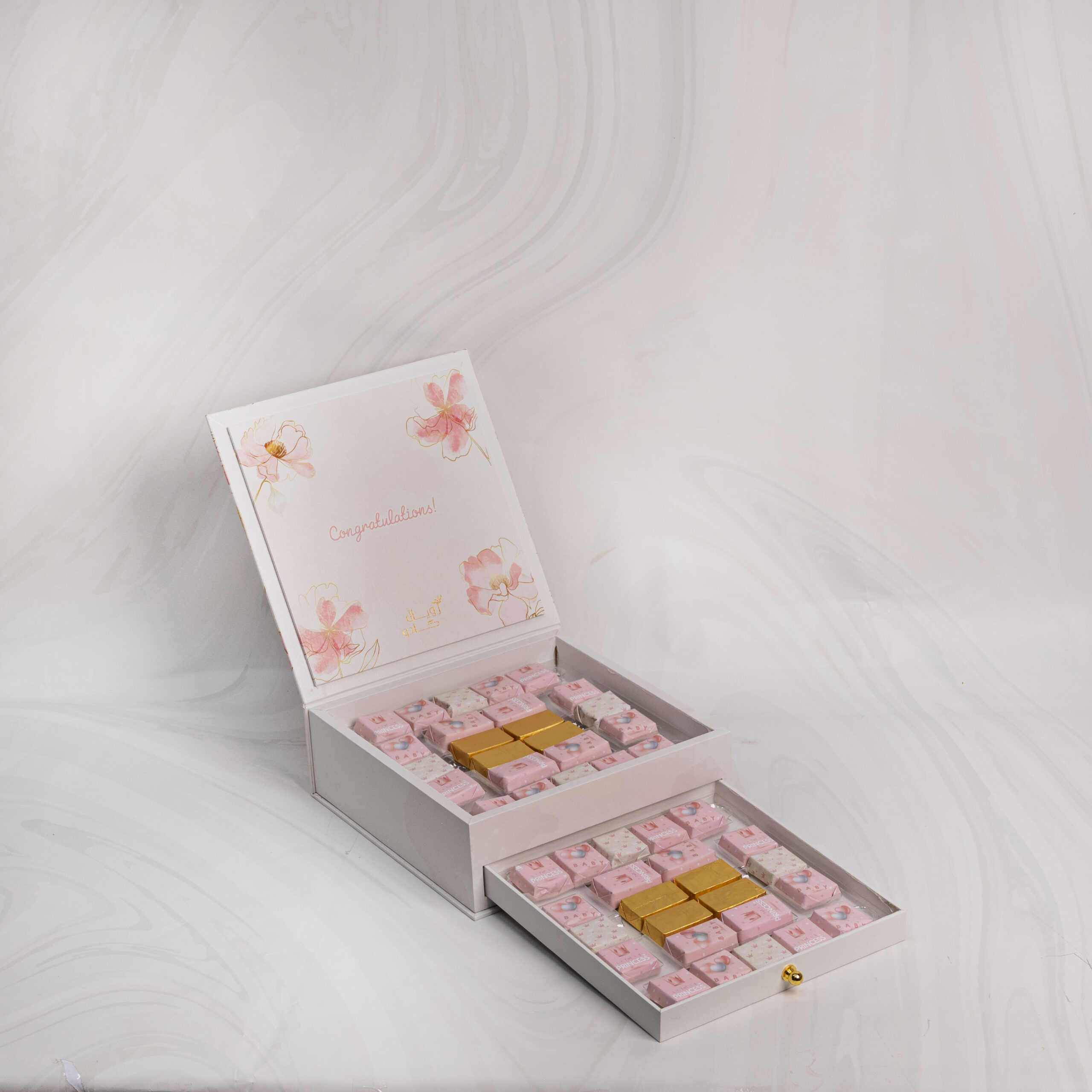 Celebrate the arrival of a precious baby girl with this elegant chocolate box, designed in soft pink tones and filled with premium assorted chocolates.